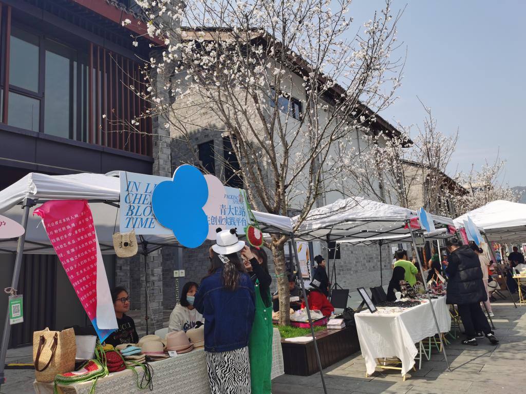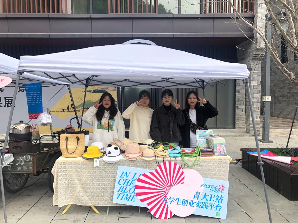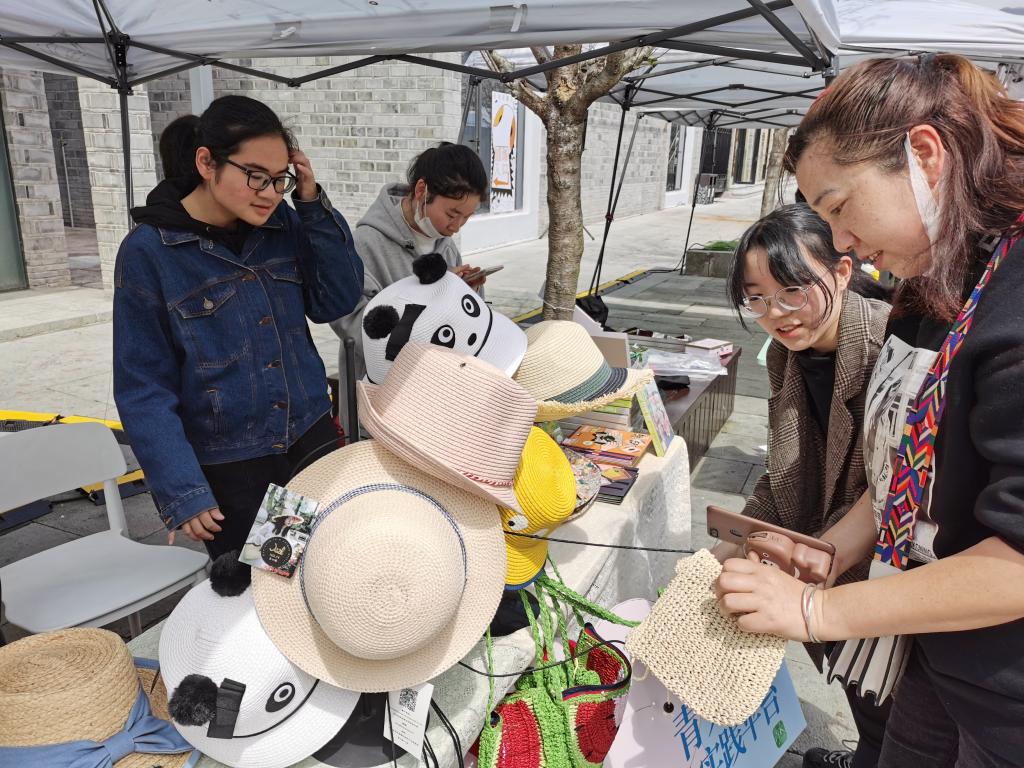 仲春时节,樱花纷纷。3月26日—28日,外国语学院学生第二党支部志愿者在台州府城文化旅游区支起帐篷、设计摊位,展示售卖“匠心路11号”品牌的非遗草编制品。