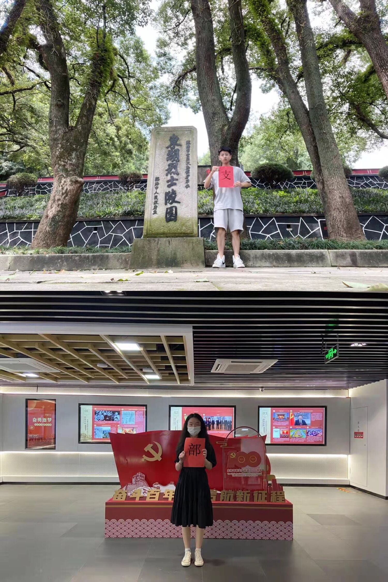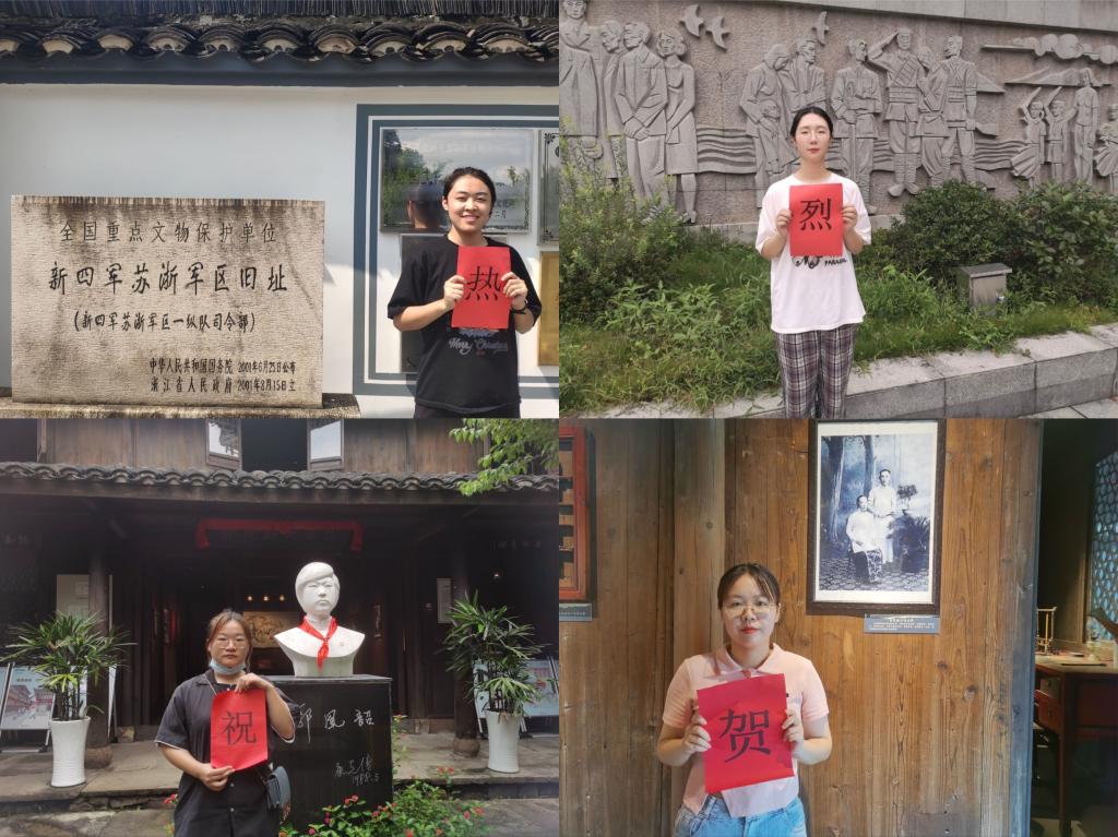 值此中国共产党成立一百周年之际,外国语学院学生第二党支部开展红色地标打卡暑期实践活动。党员们纷纷前往所在地的红色地标,手持祝福语合影留念,合影连在一起拼成了“热烈祝贺中国共产党成立100周年”的字样。大家重新走过红色地标,深刻感悟红色精神。