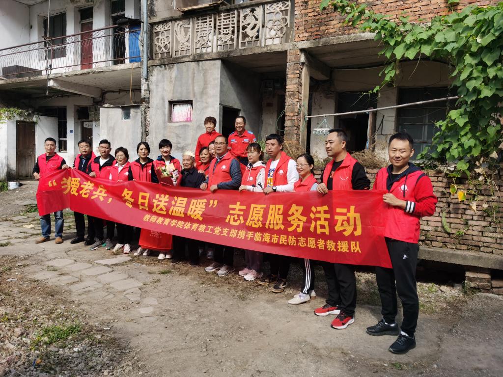在中国共产党建党一百周年之际,为践行初心使命,引导广大党员同志铭记党的光辉历史,继承和发扬艰苦奋斗的革命精神,教师教育学院体育教工党支部携手临海市民防志愿者救援队前往临海小芝镇、东塍镇走访慰问抗战老兵,为他们送去了温暖和祝福。