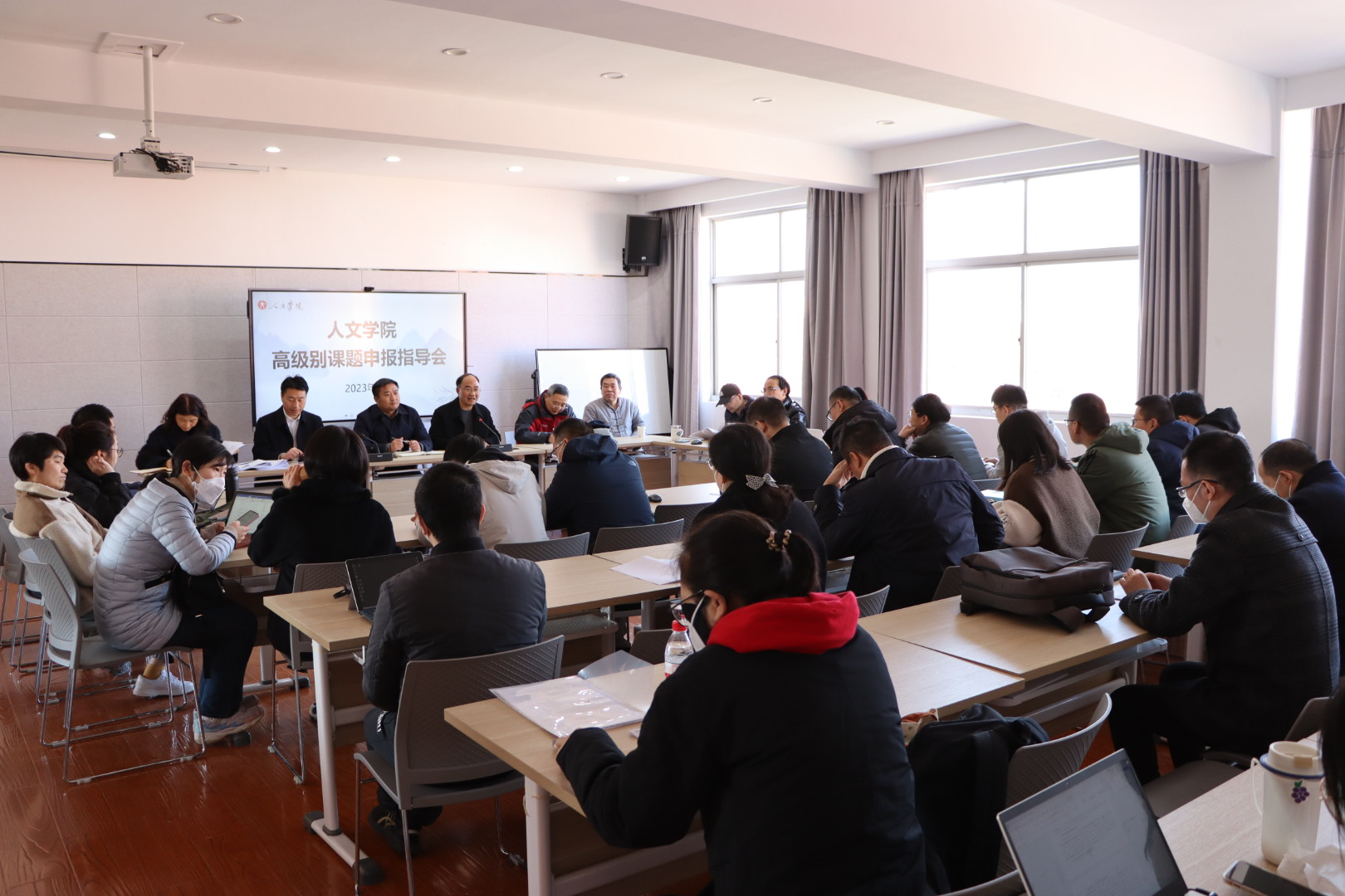 2月15日下午,人文学院举办2023年高级别课题申报指导会。人文社科处处长高平、副处长阮冰琰出席会议,人文学院副院长陈隆升主持,三台学者张京华教授、颜翔林教授及人文学院的全体教授和博士参加会议。