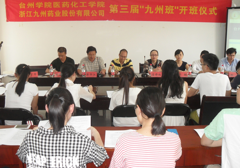 9月17日下午,医药化工学院与浙江九州药业股份有限公司联合举办的第三届“九州班”举行开班仪式。医化学院院长韩得满、党总支副书记吴高都,九洲药业人事行政总监应丹如、人力资源部经理舒超等出席;第三届“九州班”全体同学参加。医化学院副院长蒋华江主持仪式并宣读“九州班”学员名单。