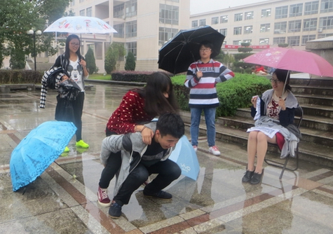活动中,各小组成员相互协作,熟悉校园的同学负责查看地图并带领同学们找到指定地点,体能良好的同学负责趣味活动。虽然天空飘着小雨,但同学们兴致昂扬,校园的每一个角落随处可见思政部学生们飞奔的身影,早已分不清他们脸上挂着的雨水还是汗水。