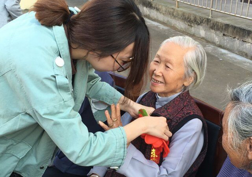 同学们用心表演着精彩的节目,老人们亦不吝惜掌声,现场欢笑不断。演出现场,同学们还为年迈的老人戴上大红花,一些老奶奶更是露出羞涩的红晕,幸福感不言而喻。重阳节的欢聚,最终在老人与学生的合影中落幕。
