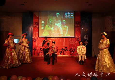 学院分团委带来经典话剧《李尔王》,赢得台下一次次的欢呼与掌声。宣传部、媒体中心联合出演的小品《万万没想到》中,活灵活现的反串将晚会推向高潮。潇洒多情的“杨过”、腼腆害羞的“小美”都在舞台上绘下自己的青春色调。