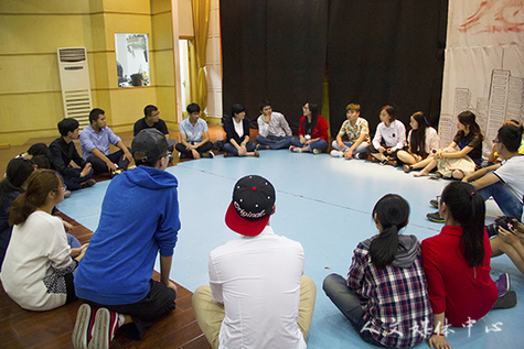 在欣赏了由阿西剧社表演的长达2小时的话剧《浪潮》后,交流会正式开始。两校剧社负责人分别介绍了各自剧社的发展现状,双方着重就编剧演剧、社团发展、社团传承等进行了广泛交流。金妮娅老师现场开设一堂简短的话剧表演课,将交流会的气氛推向高潮。
