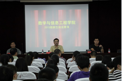 9月15日下午,数学与信息工程学院2015级新生始业教育大会在临海校区学术报告厅举行。学院党政领导应哲、冯国、王奎东出席并讲话。