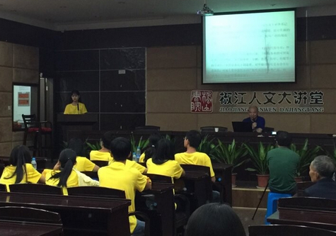 7月5日上午,医药化工学院“穹顶之下 直面雾霾”暑期环保社会实践队联合椒江区图书馆,借助椒江区人文大讲堂组织策划“雾霾防治”环保主题讲座,邀请台州市环境科学设计研究院院长万林在图书馆报告厅向广大市民作《雾霾的污染与防治》专题讲座。实践队队员胡玉秀主持讲座。