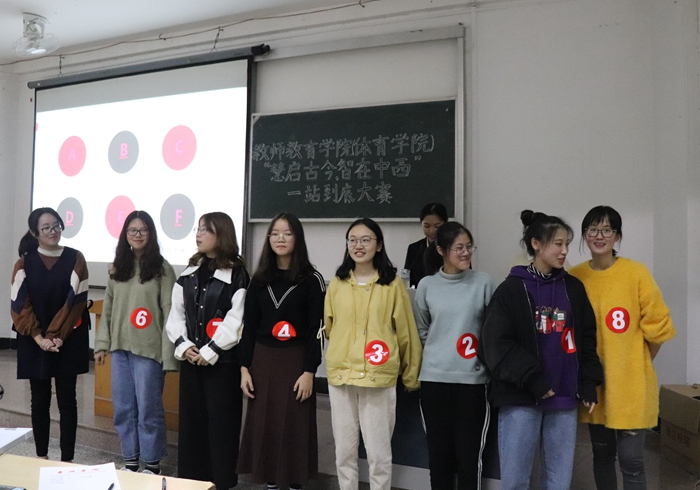 为营造积极向上的文化氛围,丰富同学们的课余生活,激发同学们学习古今中外知识的兴趣,11月15日晚,教师教育学院(体育学院)举办“慧启古今,智在中西”一站到底决赛。