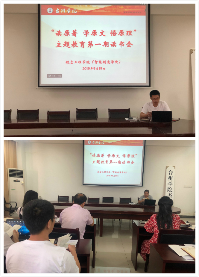 9月19日下午,航空工程学院举行“不忘初心 牢记使命”主题教育第一期读书研讨会。活动以“读原著 悟原理”为主题,深入学习了《中国共产党章程》《习近平新时代中国特色社会主义思想学习纲要》相关篇目,结合学院学习工作实际,开展交流研讨。