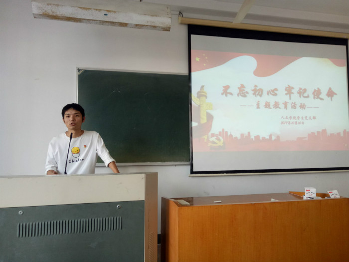 10月10日下午,人文学院学生党支部举行“不忘初心、牢记使命”主题教育集中学习研讨会。