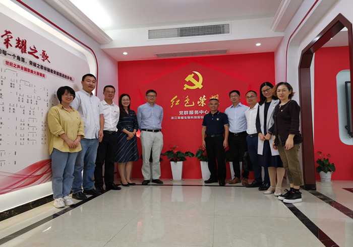 浙江荣耀生物科技股份有限公司党支部书记郑庆安与学院党总支理论中心组成员交流讨论党建工作。