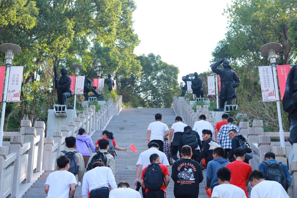 展览馆内的物品承载着的鲜活精神栩栩如生映入眼帘,先烈们艰苦奋斗的爱国精神体现的淋漓尽致,红色的记忆在镜头下更显珍贵。一枚枚军功章承载的不仅是当年的丰功伟绩,更是现在幸福安定生活的重量。在讲解员描述下,当年一举攻占一江山岛的激烈战斗场景仿佛就在眼前呈现。大家认真聆听战役的背景、战斗经过及大陈列岛解放的革命历史,认真观看历史挂图、照片和船舰飞机模型,观看了海陆空三军首次协同作战解放一江山岛的过程,怀着无比崇敬的心情伫立于一江山岛登陆战英烈群雕前,默默地向战斗中牺牲的先烈们致敬,重温那段令人难以忘怀的红色记忆,深情缅怀革命先烈不怕困难、前赴后继、英勇奋战的“一江山精神”,心灵上受到了一次深刻的爱国主义精神教育。