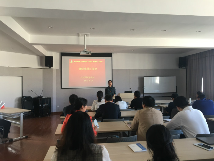 10月24日下午,人文学院党总支学院实训室举行“不忘初心、牢记使命”主题教育专题调研成果汇报会。