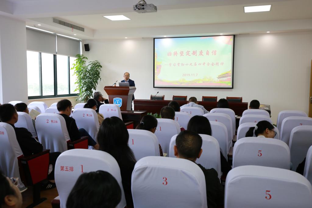 11月7日下午,医学院举行“始终坚定制度自信”专题学习会,传达学习党的十九届四中全会精神。