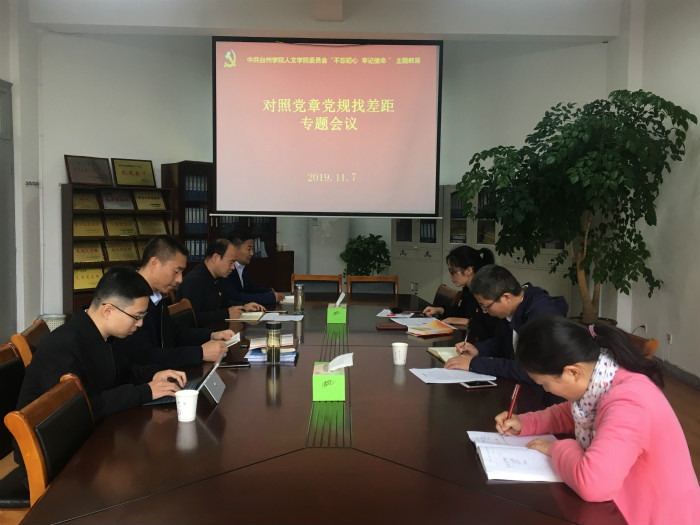 11月7日上午,人文学院党总支召开对照党章党规找差距专题会议。党总支书记郑丽君主持会议,学院全体党总支委员参加。