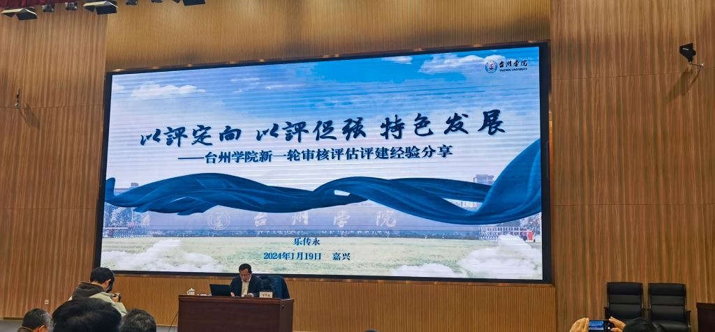 据了解,浙江省内首批共有6所高校完成本科教育教学审核评估工作,台州学院作为已参评高校代表在大会上作评建经验分享。副校长、党委委员李建军和教务处有关同志前往主会场参会,评建相关职能部门线上观看会议直播。