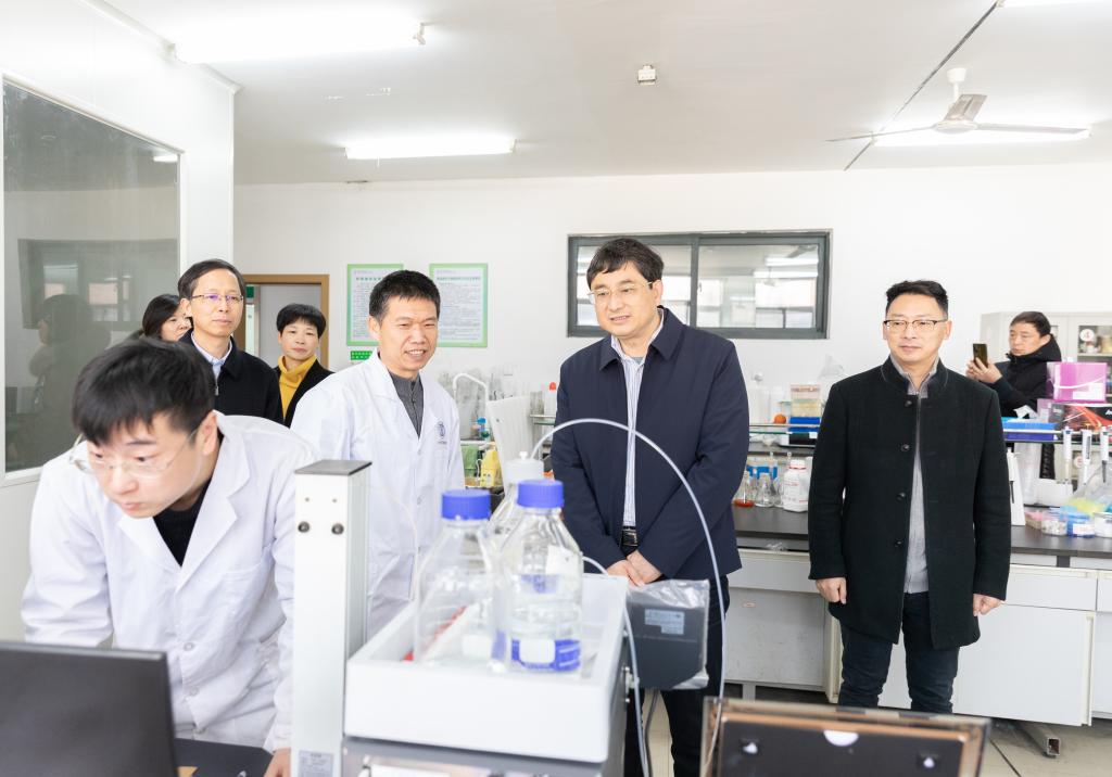 虽然是寒假期间,但不少科研人员仍在学校埋首奋斗。朱坚一行来到药学院杨仲毅教授的实验室看望慰问,在认真听取了关于实验室及其团队研究内容的介绍之后,朱坚对他们在科研工作中取得的成绩给予充分肯定,鼓励他们抢抓机遇、再接再厉,在新的一年里进一步加强科技创新、产教融合,深化校企合作,产出更多优秀科研成果,为学校的事业发展、为台州经济社会高质量发展贡献更多智慧和力量。