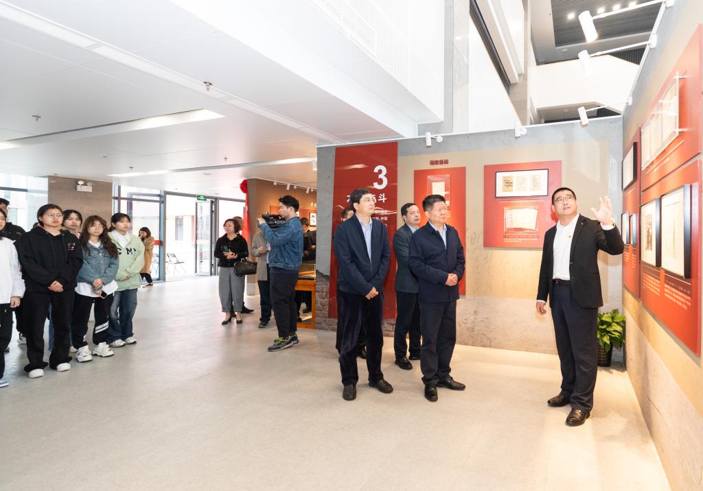 郑浩在讲话中表示,展馆的落成和开展是台州学院对习近平总书记关于做好新时代档案工作重要论述精神的具体践行,是学校激活红色档案、传承红色基因、守护红色根脉的标志性成果,既为学校发挥红色档案资政育人搭建新的平台,又让思政实践课堂更具有吸引力和感染力。希望学校要用好红色档案文献,发挥好校内思想政治教育实践基地的作用,进一步学好用好党史,以辉煌的党史教育人、启迪人、感化人、鼓舞人;要创新方式方法,深化宣传教育,赓续价值基因,让师生进一步感悟党的初心使命,更好筑牢信仰之基、补足精神之钙、把稳思想之舵;要将红色档案资源与党员党性教育、师生思政教育相结合,推动奋辑笃行,引领广大青年学生树立家国情怀、展望星辰大海,在新时代新征程上担当青年使命,自觉投身中国式现代化的伟大实践。