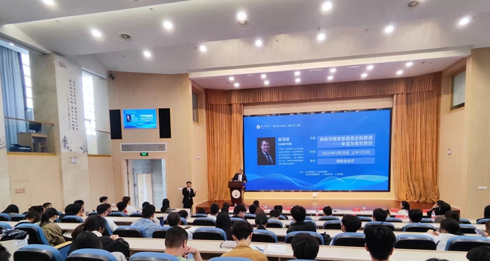 当天上午,Hamar Imre(郝清新)应邀在国际会议厅给近200位师生作《佛教对儒家家庭观念的解读:孝道为普世慈悲》讲座。李建军主持讲座。