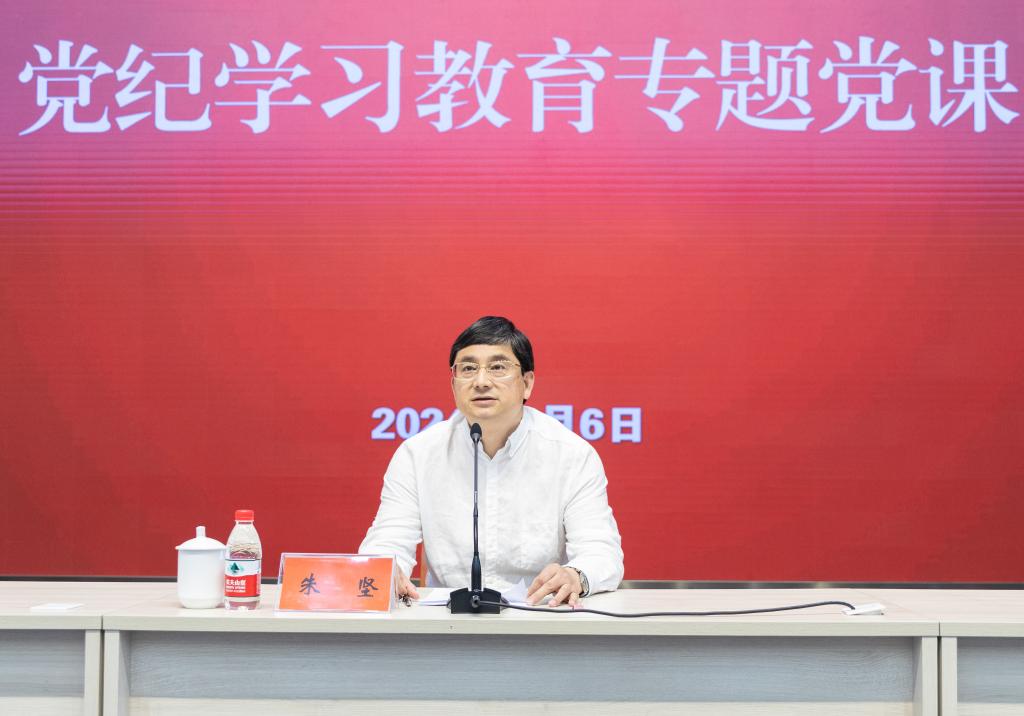 为扎实深入推进党纪学习教育,6月6日上午,校党委书记朱坚作党纪学习教育专题党课。校党委班子成员、全体中层干部、支部书记代表参加。