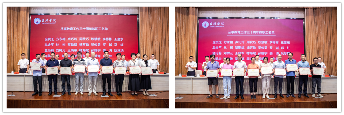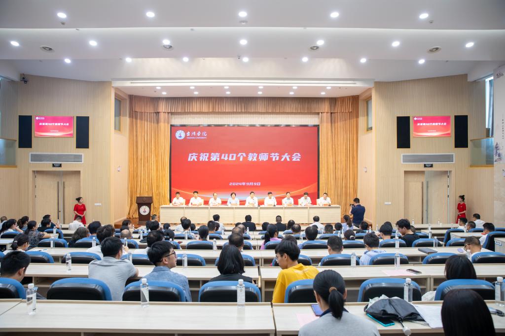 9月9日下午,台州学院举行庆祝第40个教师节大会。校党委书记朱坚讲话,校长、党委副书记乐传永宣读近一年省级荣誉获得者名单,校领导为2023年度教学奖获得者、从教三十周年教职工颁发荣誉证书。党委副书记丁一志主持大会。