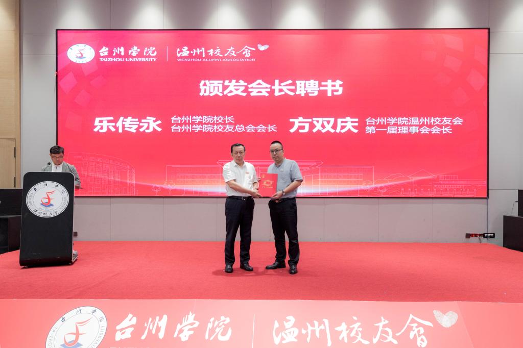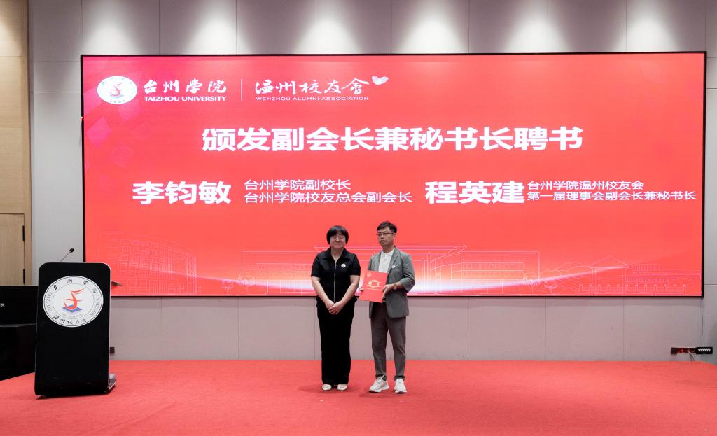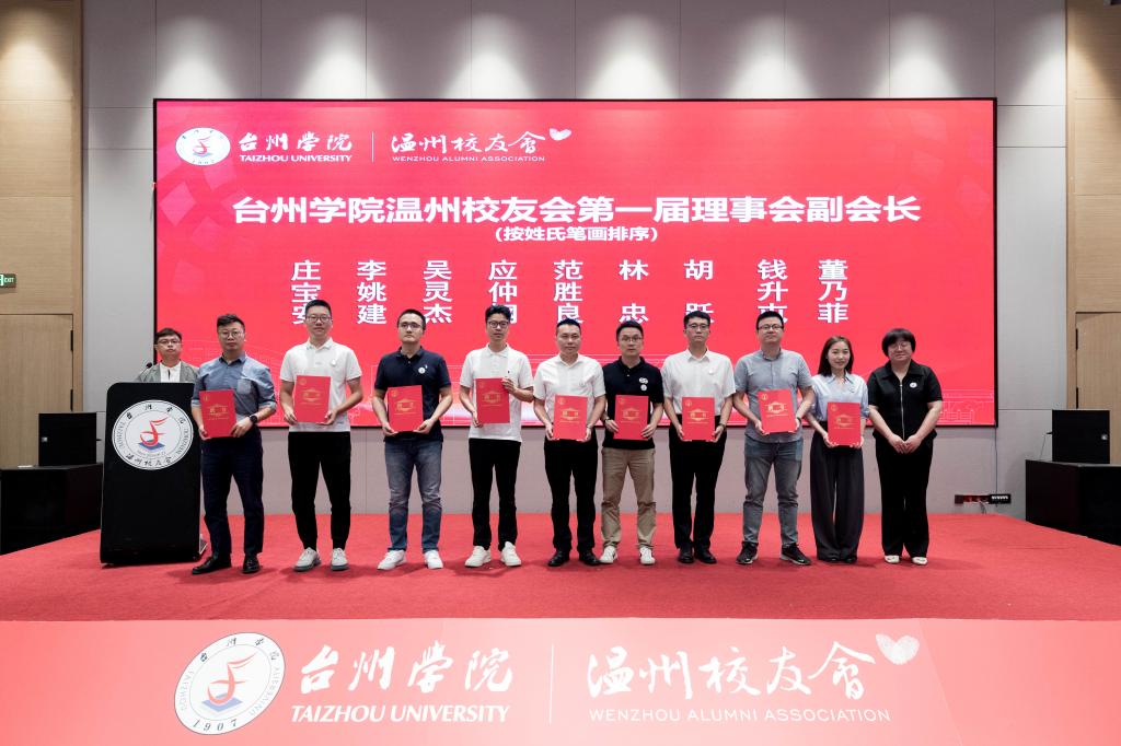 李钧敏为台州学院温州校友会第一届理事会副会长,副会长、秘书长和副秘书长颁发聘书。方双庆为台州学院温州校友会第一届理事会理事颁发聘书。