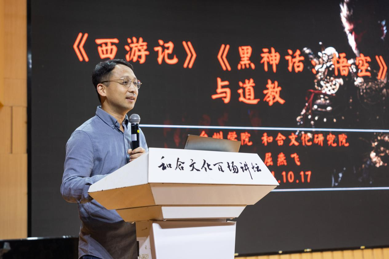 人文社科处高平教授以“从《西游记》到《黑神话:悟空》”为题,梳理了“西游”这一文化IP的历史演变。他指出神魔小说《西游记》是中外多元文化交融的结晶,《黑神话:悟空》则在此基础上生成后续文本,将哲学、宗教、文学、艺术等中国传统文化元素与现代科技巧妙融合,创造出富有东方魅力的奇幻世界,为中国和合文化走向世界树立了新的典范。