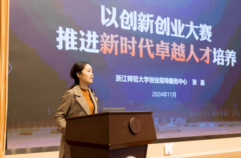 张晶受邀作题为“以创新创业大赛推进新时代卓越人才培养”的主题报告。她以其丰富的经验和独到的视角,深入剖析了创新创业大赛在推动高校人才培养方面的重要作用,并分享了浙江师范大学在创新创业教育工作中的宝贵经验。