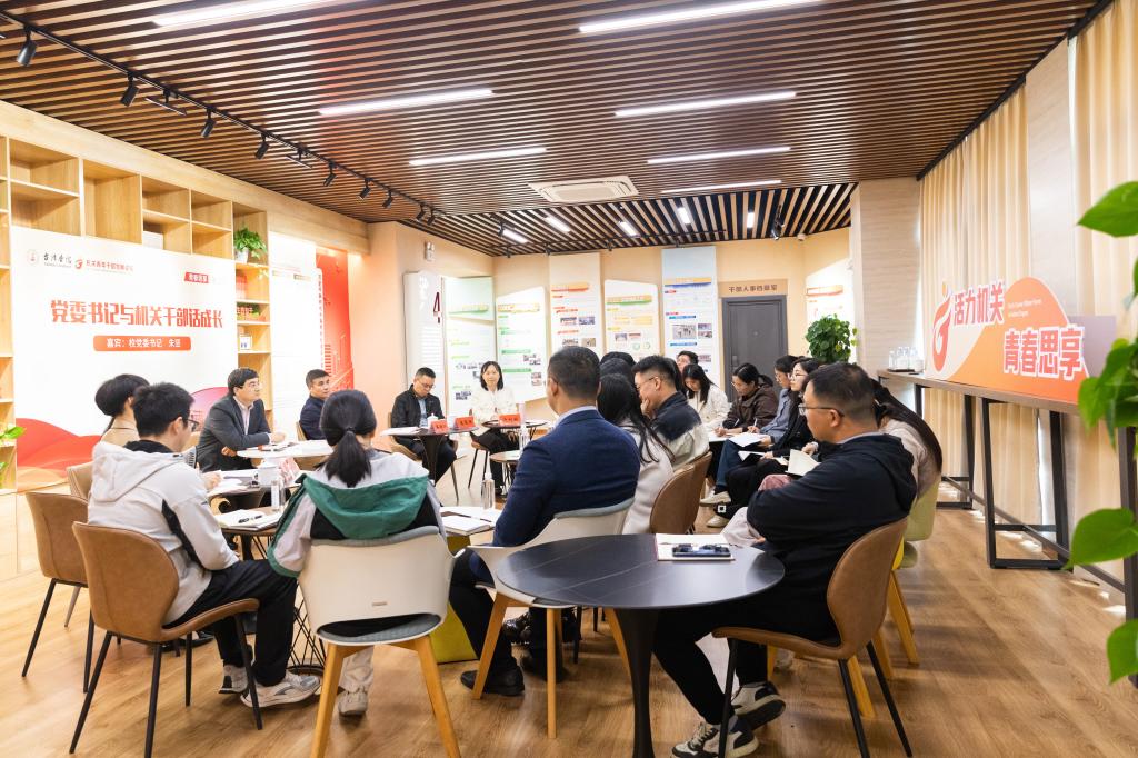 为进一步加强机关干部队伍建设,关心机关青年干部成长,激励机关青年干部积极担当作为,11月20日下午,机关党委在校党建中心举办“青春思享”第三期主题沙龙活动。校党委书记朱坚出席活动,与机关青年干部座谈交流、共话成长。校党委委员、宣传部部长、机关党委书记蔡海江,校党委委员、人事处处长郑丽君和机关青年干部代表20余人参加沙龙活动。活动由机关党委专职副书记张梅芬主持。