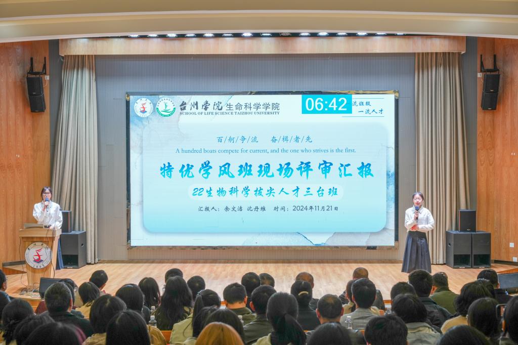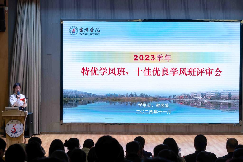 11月21日下午,台州学院2023学年特优学风班、十佳优良学风班现场评审会在椒江校区学生活动中心举行。校党委副书记项凤日,校党委委员、宣传部部长蔡海江出席,相关职能部门负责人,各二级学院分管领导及专任教师、辅导员、学生代表共110人作为专家评委、大众评委参加评审。