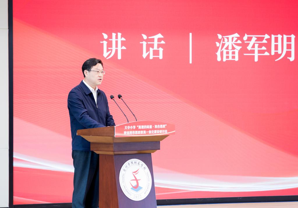 陈海晓表示,台州市坚持以习近平总书记关于思政课建设的重要论述为指引,大力推进大中小学思政教育一体化建设,在全省率先建立台州市大中小学思政课一体化建设联盟及研究中心,从体制机制、课程资源、师资队伍、育人目标四个方面“一体化推进”,合力打造“和合思政”育人品牌。他指出,推进“大思政课”建设是新时代一项基础性、长期性、全局性的系统工程,台州市教育局将从顶层设计、课程体系和资源整合三个方面全力推进。