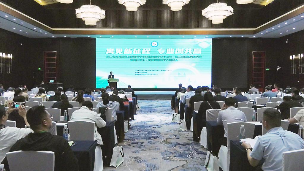 王利民代表浙江省教育后勤基建协会对大会的召开表示祝贺,并代表协会对高校公寓管理行业提出要求。他强调,要提高站位,以党建引领锚定发展方向;要坚守育人初心,以文化浸润落实立德树人;要聚焦提质增效,以精确服务回应学生需求;要拥抱科技变革,以创新驱动赋能事业发展,共同推动协会工作再创新高、校园建设再谱新篇、教育事业再铸辉煌。