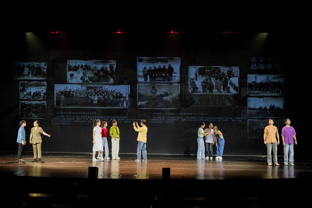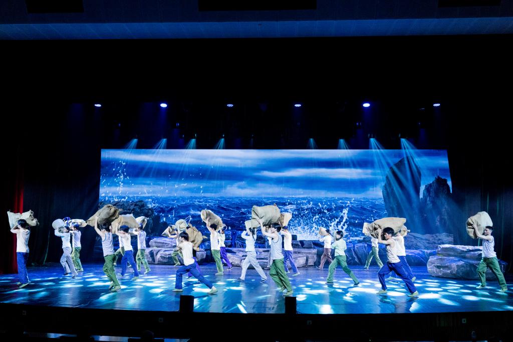《青春·遇见》始创于2024年,它以大陈岛垦荒事迹为创作原型,以“大陈岛垦荒精神”为灵魂,由学校师生携手龚乐瑛名家工作室精心打造,是一部台州本土原创话剧。该剧运用时空交错、闪回等现代戏剧手法,通过“大陈岛思政课实践教学”“垦荒队员抗击台风”“对话老垦荒队员”“重温垦荒宣誓”“争做新时代垦荒人”等桥段,巧妙串联起老一辈垦荒者的青春记忆与当代大学生的现实思考。