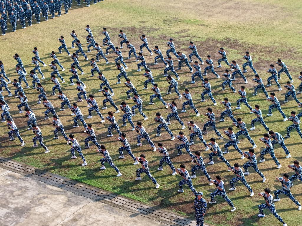 在庄严的国歌声中,汇报会正式拉开帷幕。《强军战歌》《歌唱祖国》等大合唱气势恢宏,唱出了新时代青年大学生的爱国情怀与强军信念。战术表演方阵展示了一系列实战动作,擒敌拳方阵的表演招招有力、虎虎生风,展现出学子们昂扬的斗志与过硬的本领。