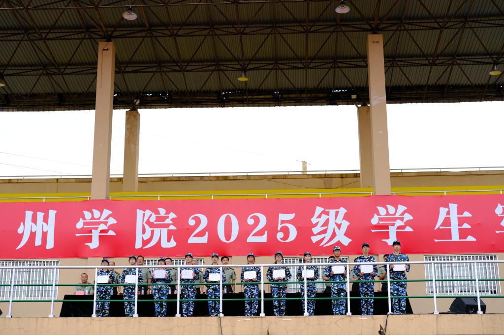 在表彰环节,与会领导为2025年新生军训先进集体、优秀教官颁发了荣誉证书,勉励新生将军训中锤炼的意志品质延续到学习生活中。