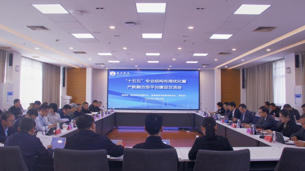 10月29日下午,学校在椒江校区行政楼四楼会议室召开“十五五”专业结构布局优化暨产教融合型平台建设交流会。校长、党委副书记乐传永出席并讲话,副校长、党委委员李建军主持。