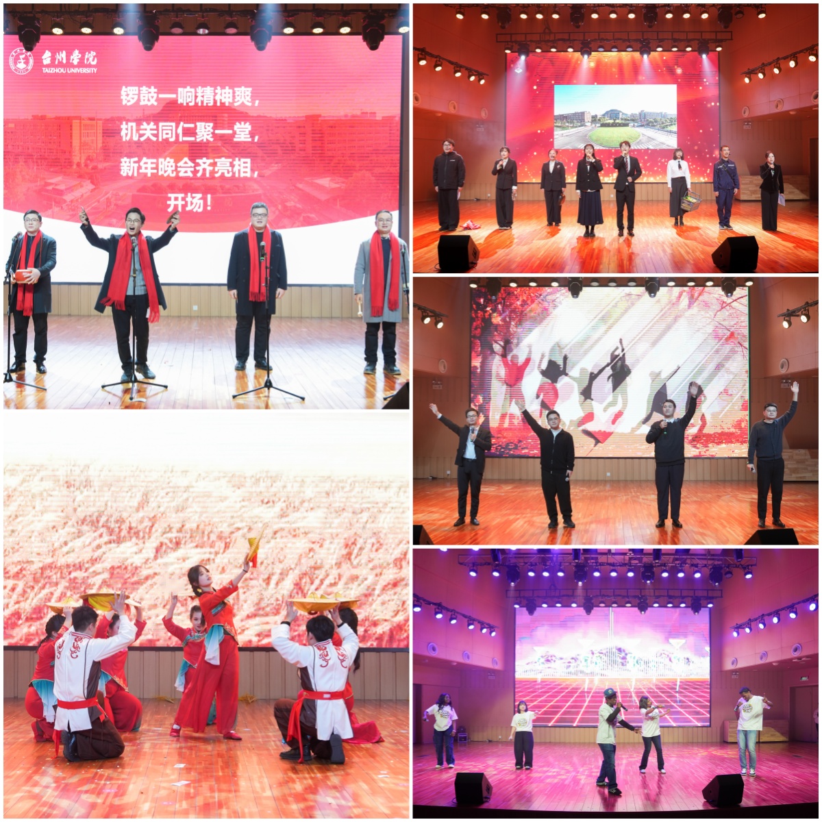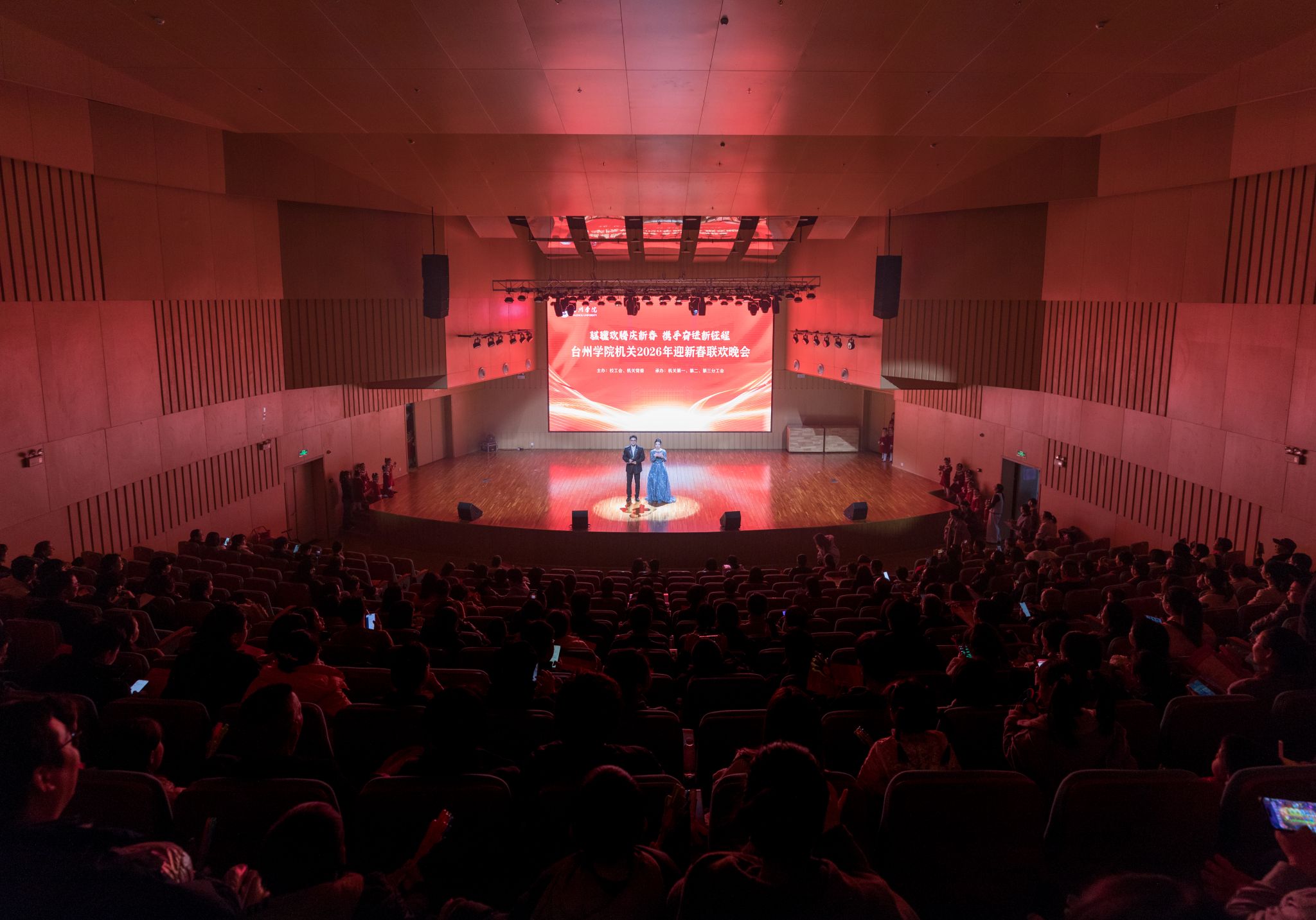 骐骥欢腾庆新春,携手奋进新征程。1月14日晚,学校机关2026年迎新春联欢晚会在椒江校区举行。校领导朱坚、楼胆群、项凤日、丁一志、蔡海江、郑丽君、吴银银与机关教职工欢聚一堂,共迎新春佳节,凝聚奋进力量,展望崭新征程。