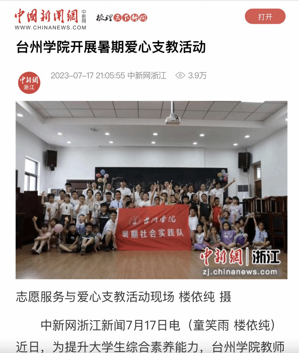 近日,为提升大学生综合素养能力,台州学院教师教育(体育)学院党员爱心服务实践队利用暑期时间,在台州市临海摆酒营社区开展志愿服务与爱心支教活动,围绕着“迎亚运”主题开展拓展性课程。