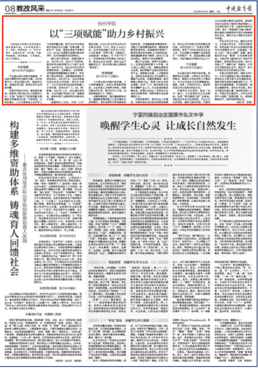 全面推进乡村振兴是高质量发展的重要内涵。台州学院发挥人才、学科、科研优势,以“书记手牵手 发展肩并肩”为引领,开展科技赋能、教育赋能、文化赋能,助力乡村振兴。