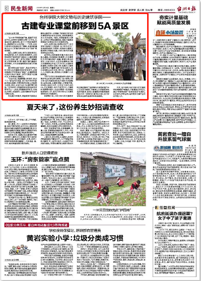 而在黄大树看来,课堂前移无疑是古建专业教学的一次革新。“临海是文物与历史建筑学院办学的主战场,是传承建筑历史文化的高地。”他说,把课堂搬到5A景区,让学生们亲临古建现场,能极大程度地提高他们的感知力和文化情感共鸣。