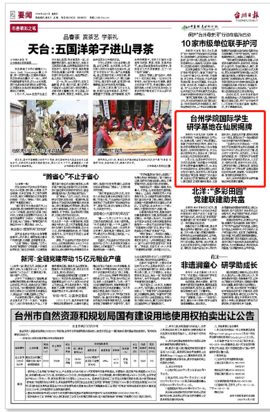 当天,台州学院国际学生研学基地在神仙居景区揭牌。