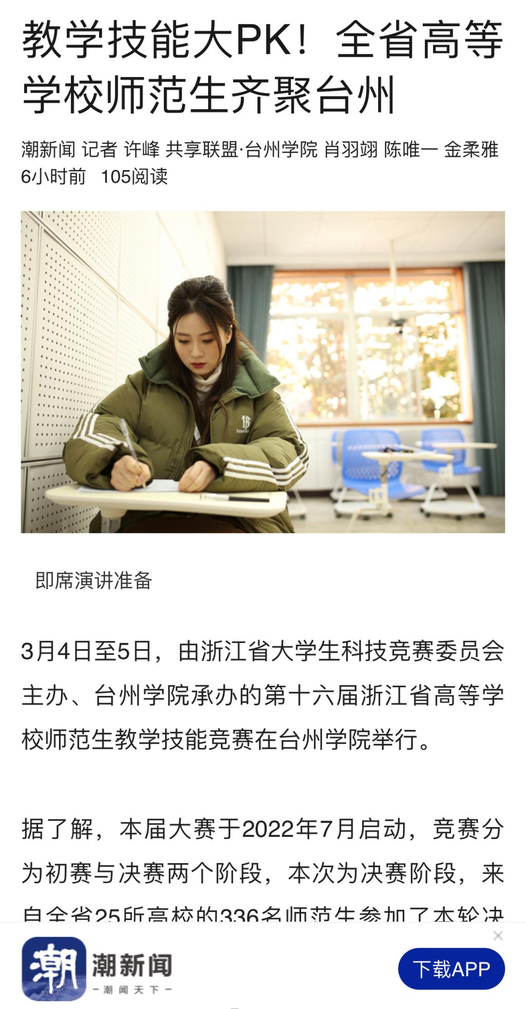 3月4日至5日,由浙江省大学生科技竞赛委员会主办、台州学院承办的第十六届浙江省高等学校师范生教学技能竞赛在台州学院举行。