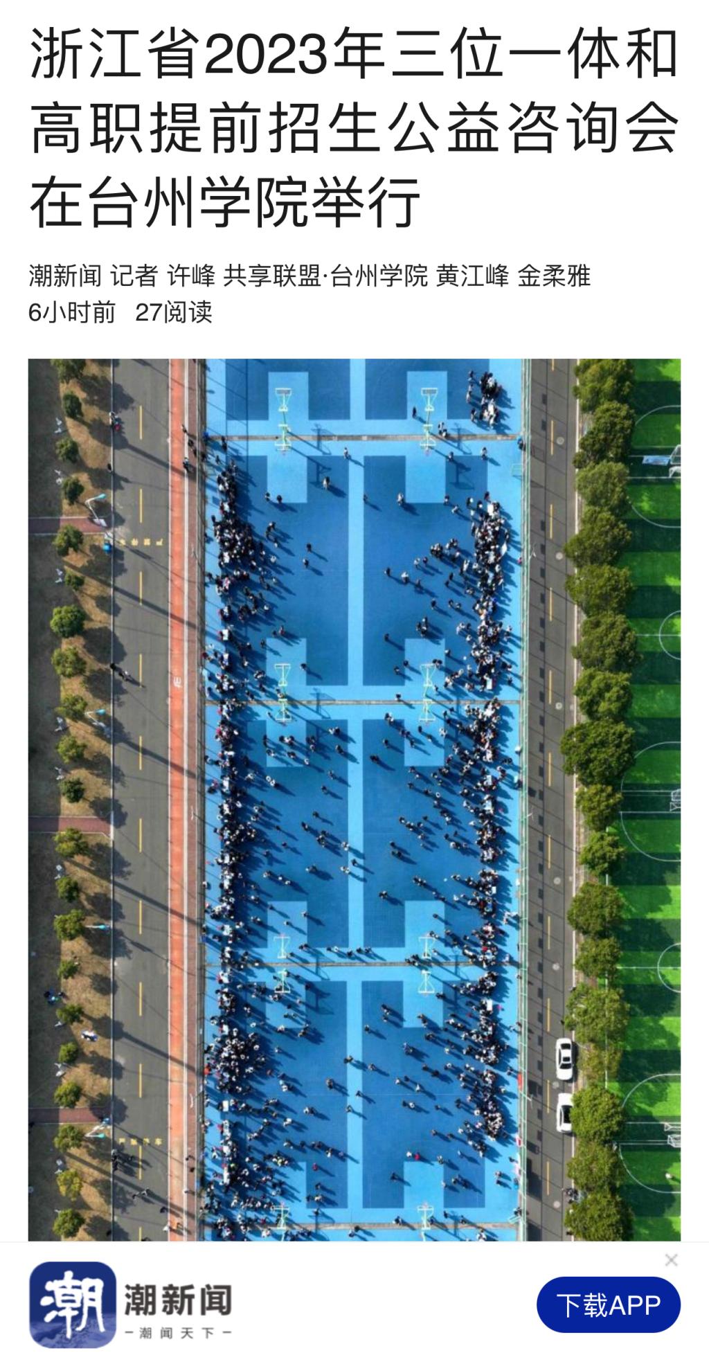 随着2023年普通高校招生工作的推进,近期,省内各大院校陆续发布“三位一体”综合评价和高职提前招生相关政策,并逐步开启网上报名工作。为有效回应考生、家长和社会各界的关切,服务台州及周边地区县市的考生,由台州市教育考试院、中国教育在线、台州学院共同举办的浙江省2023年三位一体和高职提前招生现场公益咨询会(台州站)日前在椒江举行。