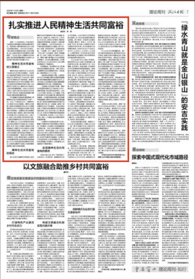 党的二十大报告指出,中国式现代化是物质文明和精神文明相协调的现代化。物质富足、精神富有是社会主义现代化的根本要求。习近平总书记指出,“我们说的共同富裕是全体人民共同富裕,是人民群众物质生活和精神生活都富裕”。可以说,促进人民精神生活共同富裕,是实现高质量发展的内在要求,也是实现中国式现代化的题中之义。