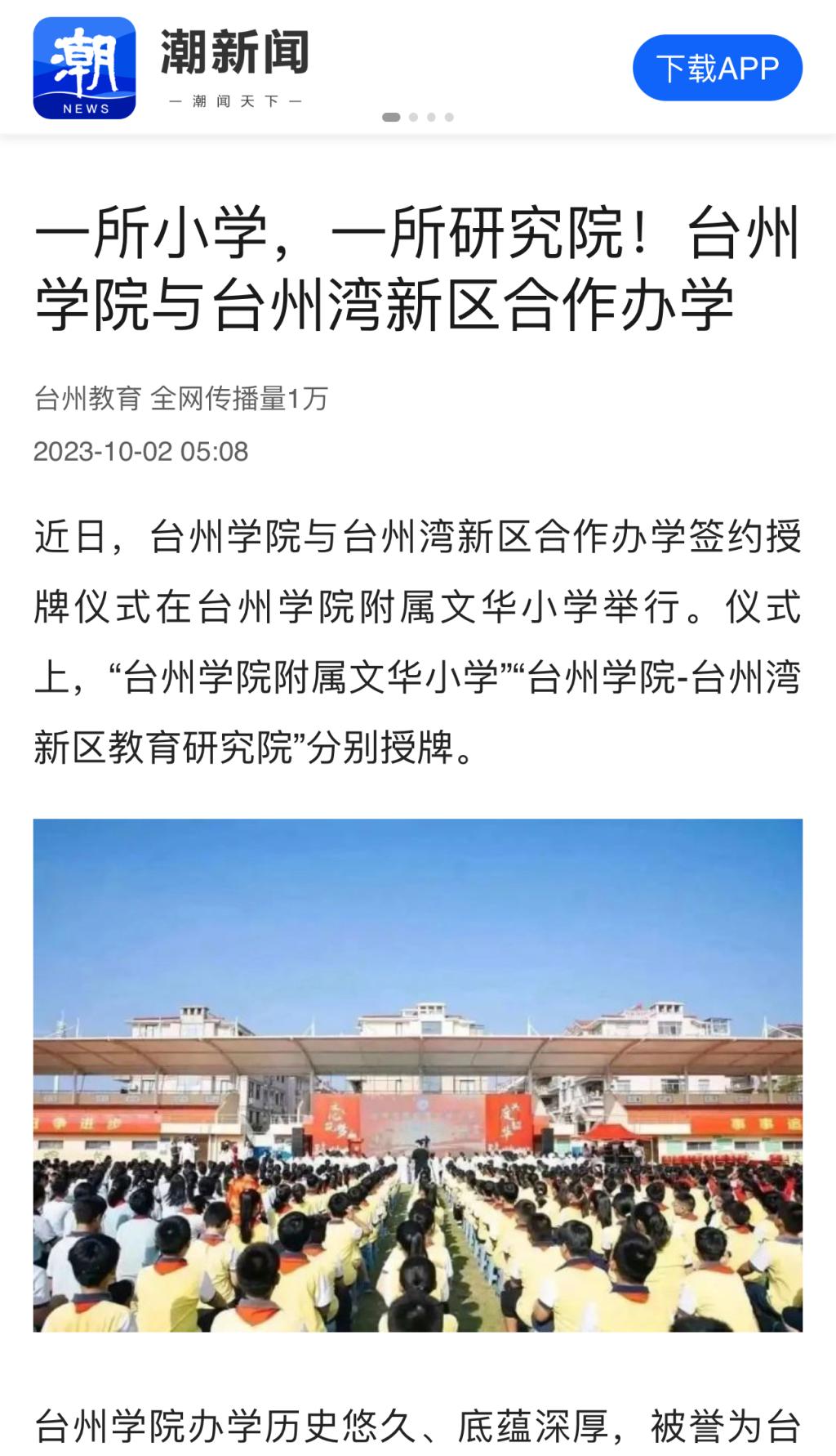 台州湾新区管委会将以更大力度、更多实招支持教育,推动校地合作各项工作落到实处、取得实效,建设好台州学院附属文华小学和台州学院-台州湾新区教育研究院,助力新区打造区域教育高地,让更多孩子在家门口“上好学”。
