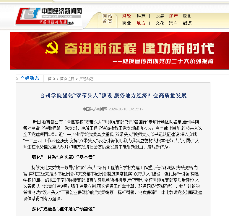 台州学院强化“双带头人”建设 服务地方经济社会高质量发展