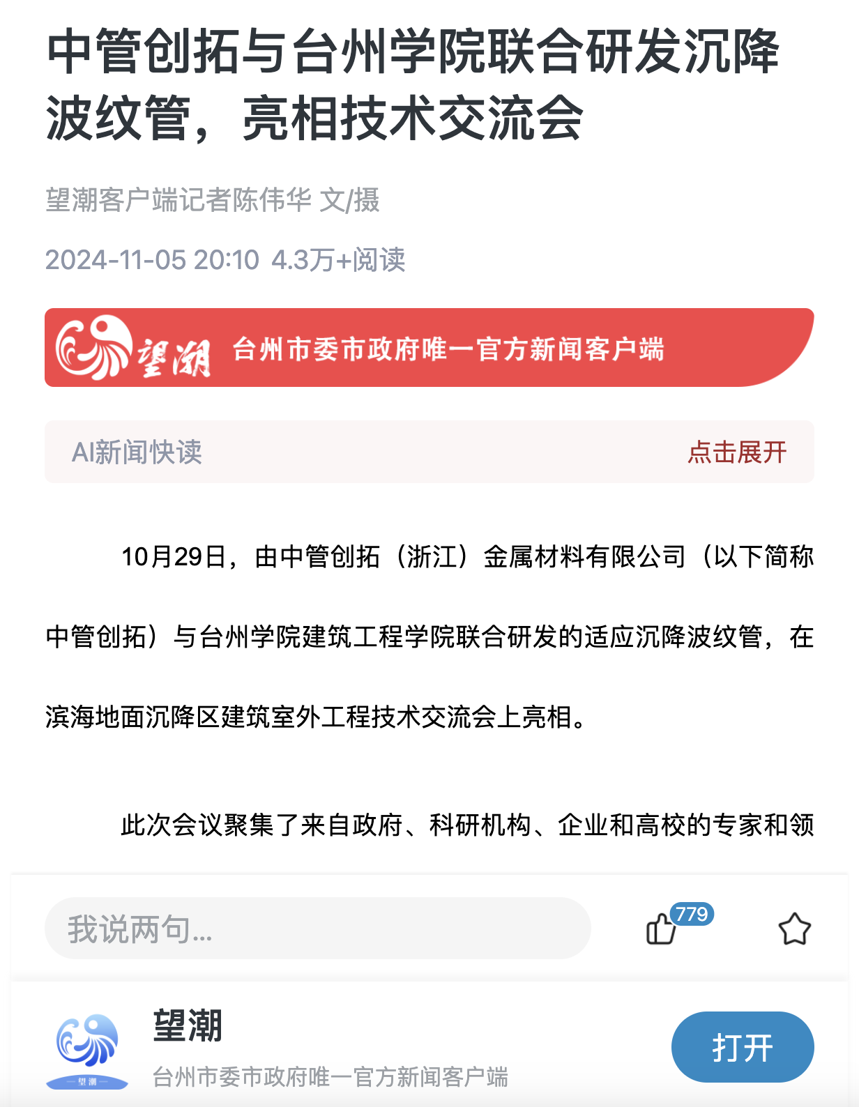 ——发布于2024年11月5日《望潮》客户端