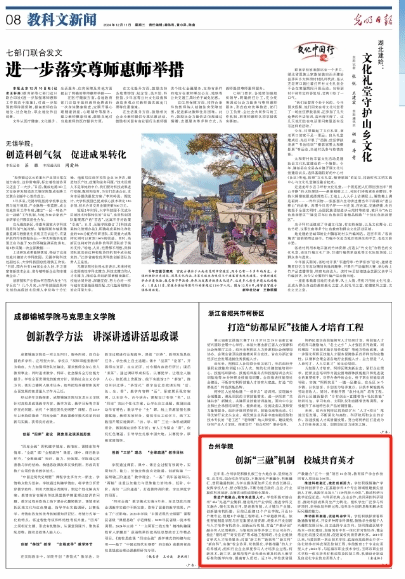 推动普职融通,促进终身学习。学校积极探索普职融通教育模式,开设多种跨学科课程,鼓励学生根据个人兴趣和发展目标,自主选择专业方向。协同推进区域中高本一体化建设,加强现有中本一体化针对性培养,健全常态化沟通交流机制,促进高校优质资源共享。2019年以来,与黄岩第一职业技术学校、临海市高级职业中学一体化培养材料成型及控制工程、学前教育2个专业应用型人才;2024年,与临海市职业技术学校、玉环市职业技术学校一体化培养材料成型及控制工程、机械设计制造及自动化专业的应用型人才。