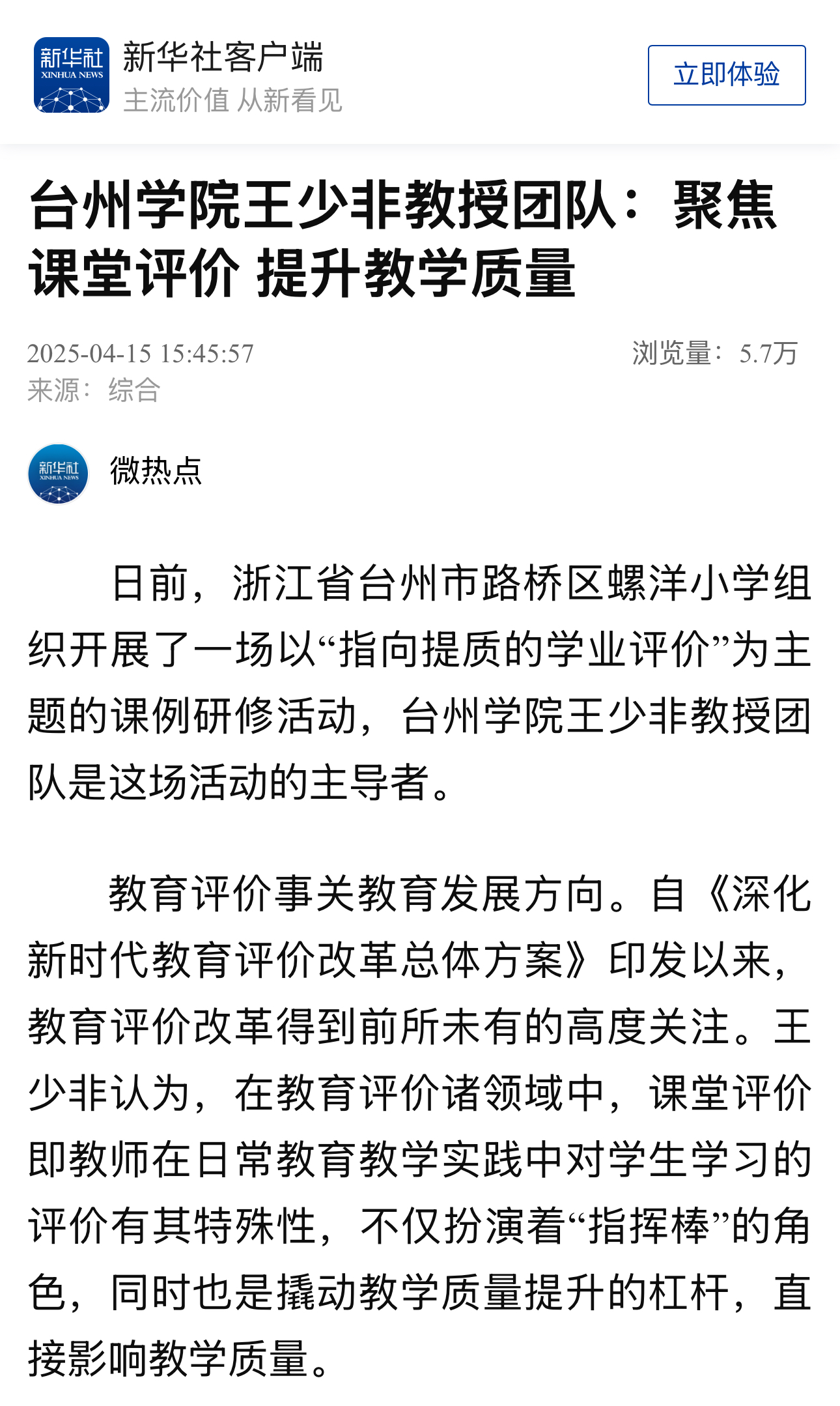 台州学院王少非教授团队:聚焦课堂评价 提升教学质量