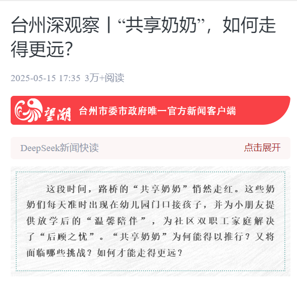 台州深观察丨“共享奶奶”,如何走得更远?